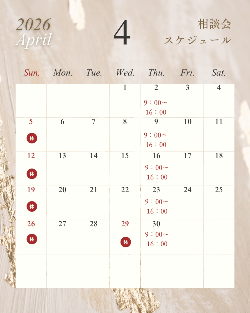 4月度も毎週木曜日、時間に余裕をもって対応をしてまいります。